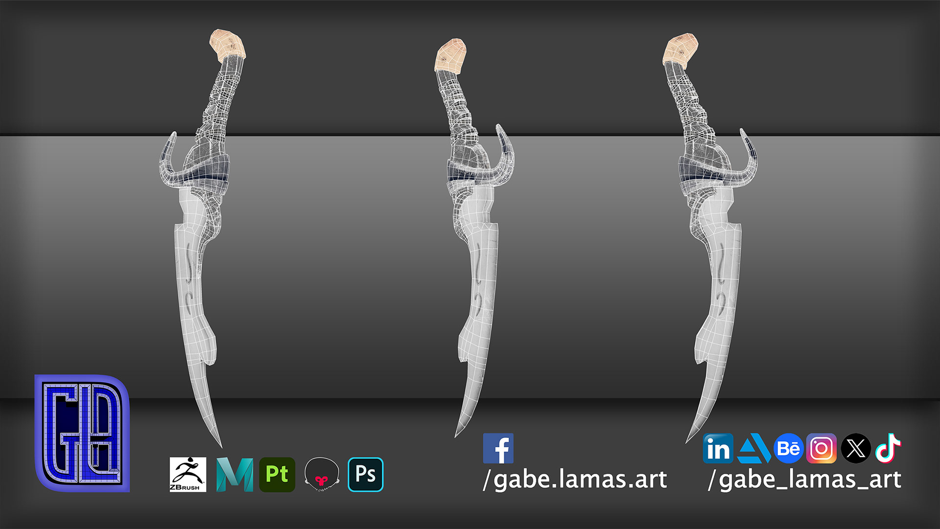 ZBrush by Maxon, Autodesk Maya, Adobe Substance Painter, Marmoset Toolbag, Adobe Photoshop